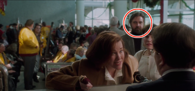 There is a scene midway through the film Home Alone, where Catherine O'Hara's character, exhausted from trying to get back to Chicago to reach her son whom she forgot and left at home, barters with an airline employee over a ticket counter in the airport. An impatient bearded man in a sports coat and turtleneck watches from behind her in line. This man, many believed, was Elvis.