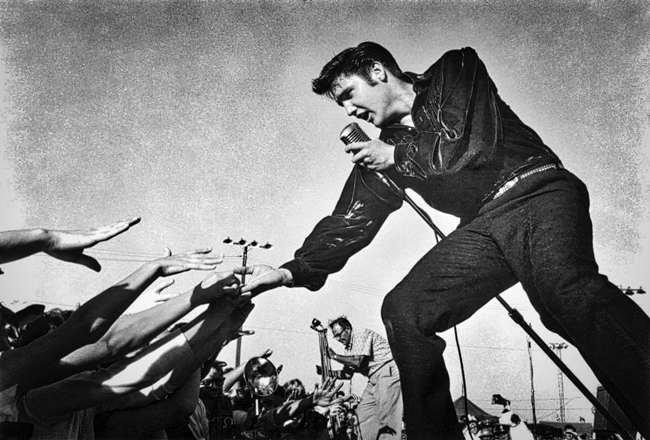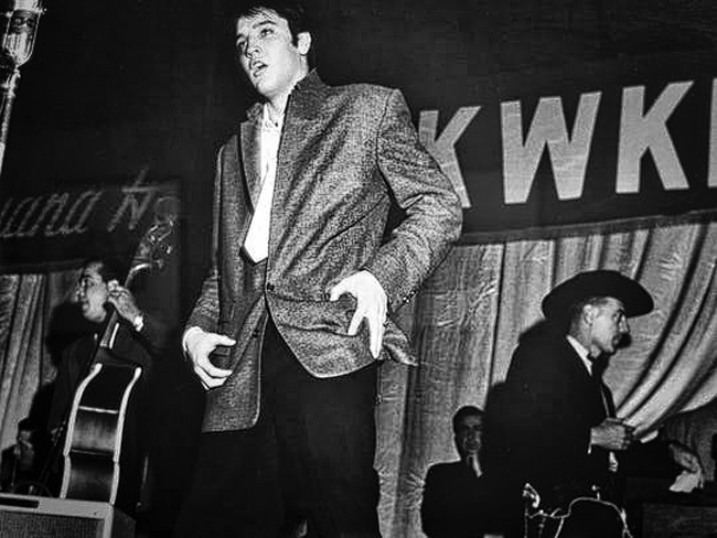 Stardom was far from a slam dunk for Elvis in the beginning. Most music producers at the time didn't think his “sound” was marketable. He was, after all, a white man playing "black" music, and many producers thought that made him unattractive to listeners of either ethnic persuasion (it turns out just the opposite were true). A tipping point did come though when his mixture of black gospel sounds and rhythms, and provocative hip-gyrating performances, flashed over, bringing him fame in an astonishingly short time. The rest, as they say, is legend.