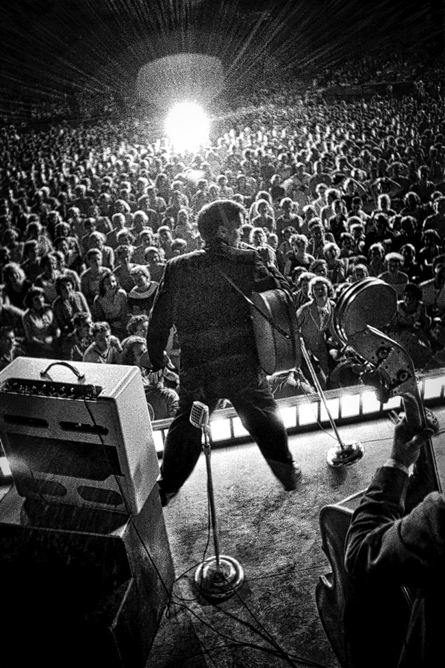 Elvis onstage at Russwood Park in Memphis in July 1956.