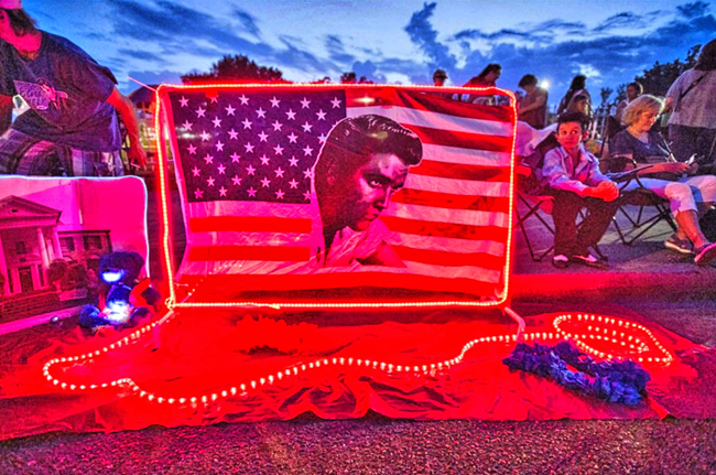 Fans (many of them born after Elvis passed away) gather for a candlelight vigil in front of Graceland on August 15, 2017, the night before the 40th anniversary of his death.