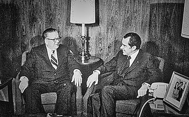Teamsters acting president Frank Fitzsimmons is thought to have solicited a commutation of Jimmy Hoffa's prison sentence from president Nixon in 1971 – with the stipulation that Hoffa could not return to a leadership position in any union until 1980.