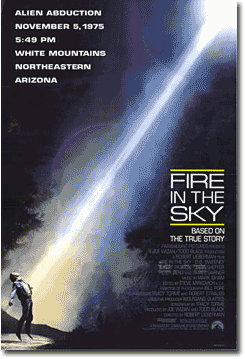 The Mastermind Directed By: Robert Lieberman. Running Time: 109 Minutes. “Oh, shit… Look at that f---ing thing. It’s coming to get us...” Okay, we made that line up. Let us just say, the screenwriting is nothing special. I watched the whole thing and nothing really left an ear print. It was serviceable though. CoverUps.com Rating: 2 UFOs Matt DeReno (January 22, 2007) - Fire In The Sky is based on a true story that takes us back to November 5, 1975, in a mountainous area near Snowflake, Arizona. Here we find the young folksy-friendly, logger and dreamer, Travis Walton (Sweeny), who has designs on a local charming debutante. But, as you will learn, his marriage plans are derailed. Get ready for this: Travis disappeared on a late night return trip from logging during an encounter with a strange fiery-looking basketball thing, which looked like it was ready to give birth to a large glowing orange - in the night sky! Travis, like a true jackass, was namely responsible for his ensuing abduction because he approached the hovering space alien thing – almost taunting the craft - and got his ass zapped! This was a UFO of course (if you haven’t already guessed) and it scared the bejesus out of his logger buddies, who fled the scene like bats out of hell. Then, at the bottom of the hill, all huddled in their pick-up truck, human nature presumably makes Mike Rogers (Patrick), the leader of the pack, and Walton’s would-be brother-in-law, go back up the mountain to get their dumb friend - the smarmy kid that just had to stick his finger in the flame. But, he is gone. Where Travis was at this point is any alien’s guess. But, hey, a great story is born! Mike Rogers and the rest go back to town where the good old town folk, suspecting foul play, quickly turn on Mike Rogers and his crew. An investigator, Frank Watters (Garner), comes to harangue them until they confess what really happened. However, there is no motive as to why they would want to kill their buddy and claim he was abducted by a flying saucer! So, the cover-up then, is whether the abduction of Travis Walton was merely a hoax or part of the mysterious pantheon of real life alien abduction phenomena. When Travis shows up five days later, cold, naked and scared as all hell, we are inclined to believe it was a real alien abduction. Either that, or Travis had a drug problem nobody knew about and he got a hold of some mean stuff. Or, perhaps he decided running around naked in the mountains for five days would be fun. Hey, guys have done weirder things. Okay, there may or may not be such a thing as alien abductions but there is the very real and scary corollary of renting a movie from one’s Netflix Queue only to have it magically appear on the gimmie section of your cable on-demand service – the work of aliens? Perhaps. And on that note, we awkwardly segue into a cinematic critique of Fire In The Sky. From the standpoint of pure movie workmanship it is a very average, but it does go up a gear when you get inside the Alien spacecraft, which makes this film’s interest back loaded as this happens far too late in the cinematic affair. But, I did think the actual abduction was weird and freaky. It held my interest and does elevate the film somewhat, in the end. The problem is the rest of the movie that precedes this part. It really doesn't grip us or hold the high level interest generated from the outset, which is the alien kidnapping of their logger buddy, Travis Walton. The surly friend was mistakenly emphasized in my opinion. After all, they showed the UFO at the beginning. We know this dufus didn’t get mad and kill his friend. So, why bother with him so much acting like he may have killed him? It is between the disappearance of Travis and his reappearance where the film primarily bogs down on Mike Rogers, despite being acted nicely by Robert Patrick. This less interesting dynamic simply dominates far too much of the movie. I will give Robert Patrick credit however. He is the most effective actor in this film and, for our sake, the alien’s choose the right guy in abducting D.B. Sweeney who played Travis Walton. Perhaps it was this role that prompted Patrick’s hiring for the X-Files? I wouldn’t be surprised. He has that “Aliens don’t F with me” kind of gravitas. In any case, I don’t entirely fault the film for focusing on the town’s reaction. After all, if your friend was abducted by aliens, who would believe you? And what would prompt a group of loggers to concoct a story for the attention? We are sold on the loggers as solid young men by the local Sheriff early in the movie. But, maybe they had a history of pulling pranks and stuff? If so, then we don’t know about it. Still, do we really care? We want more aliens, less humans. The balance of the movie was tilted too far to the human side and probably was its greatest transgression but can you really blame it since it was based on a true story? Other than what I found on the Internet, I have not read the official account of the Travis Walton Experience. The film interested me enough that I plan to do so sometime before I am abducted by aliens myself. That the movie has piqued my interest may be credit enough that it is a serviceable film but if not for the last segment, it would barely elevate above most made-for-TV programming. Fire In The Sky would be tantamount to a long and very average X-files episode. On the criterion of cover-ups, it fairs much better than on pure cinematic qualities. However, I have my own theory on what the aliens really did to Walton when he was on board their UFO for five days: they made him watch Fire In The Sky for five days straight! It might explain his appearance when the found him naked and broken down at a gas station. BACK TO: Movie CoverUps Index * Specials * Main Index Content Copyright © 1996 to by The Web Network Inc GreatTastings.com * HauntedHouses.com * HistoricClub.com * Nightmares.com |