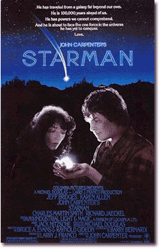 Directed By: John Carpenter. Memorable CoverUps.com Rating: 2 UFOs Matt DeReno ![]() ![]() ![]() ![]() ![]() ![]() ![]() ![]() Upon arriving in Earth's atmosphere, the Starman's ship is attacked by U.S. military aircraft, forcing it to go up in a ball of flame and crash in the woods. The Starman, at this point, is a ball of light. He goes searching the countryside and finds the log cabin (a nice one mind you) of an attractive young woman belonging to Jenny Hayden (Karen Allen) who was busy pounding wine, dressed only in her underwear, when she passed out in sad longing of her dead husband (Jeff Bridges), a local painter. The "being" finds a lock of her husband's hair in a photo album. He scans the DNA from the hair and "poof" becomes a fully grown cloned body of her dead husband within minutes. The Starman then demands Hayden drive him from Wisconsin to Meteor Crater, Arizona. There, presumably, his Mother Ship will be picking him up. Hayden is both terrified and fascinated by a being who has assumed the form of her dead husband. Still, she reluctantly complies to help the Starman get to Arizona. As they head on down the road, the couple is pursued by the U.S. Army, who detected the crash and is nonplussed that an alien choose to return the Earth's very own invitation. Led by gung-ho NSA Chief Fox and nerdy SETI scientist Shermin, it is a race to the clock to capture Starman. Over the course of the journey, the Starman learns about humanity through direct experience as well as from some poignant insights by Hayden, who in turn finds that Starman is a tender, sincere, loving alien from outer space. By the end of the journey, when Starman is retrieved by his fellow extraterrestrials, he has saved Hayden's life. Additionally, they have fallen in love and Starman knocks her up. Needless to say, the sex must have been out of this world. Bridges was nominated for an Academy Award for Best Actor and deservedly so – he is pretty darn convincing. He takes a role that could easily have been a set up for alien road-trip gag humor and makes it believable. By today's standards, the movie might seem a bit corny and dated. After all, you have to use your imagination to believe Bridges is the Starman, an alien in human form. When is the last time you were asked to use your imagination at a movie? It would seem CGI technology has made every attempt to get rid of the imagination since. But, in Starman it is required and reminds us why it is fun to imagine in the first place. All in all, Starman is a decent cinematic effort, dated by today's standards, but still holds up well. Put it up on your CoverUps shelf. Just don't tape any locks of hair to the DVD. After all, you don't want a Starman to assume your life form one day and make you drive half way across the country – especially with the prices of gas today! BACK TO: Movie CoverUps Index * Specials * Main Index Content Copyright © 1996 to by The Web Network Inc HauntedHouses.com * HistoricClub.com * ReceptionMansion.com * Romances.com |