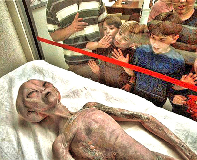Children gather at the alien autopsy exhibit at the International UFO Museum and Research Center.