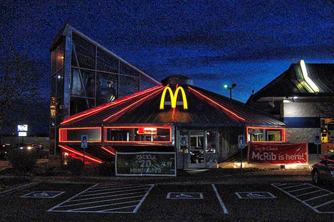Hungry drivers on the Extraterrestrial Highway should keep their eyes peeled for this sign advertising the Little A'le'inn, a restaurant which features world famous Alien Burgers and Alien themed beers on the menu.