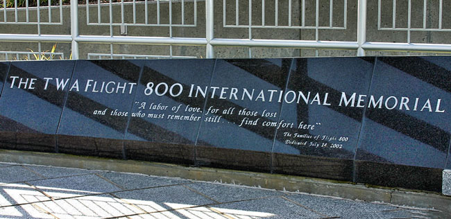 The TWA Flight 800 Families Association was the driving force to create the TWA Flight 800 International Memorial, which opened on July 17, 2002. It's located on a small plot of land within Smith Point County Park, on Fire Island, New York.