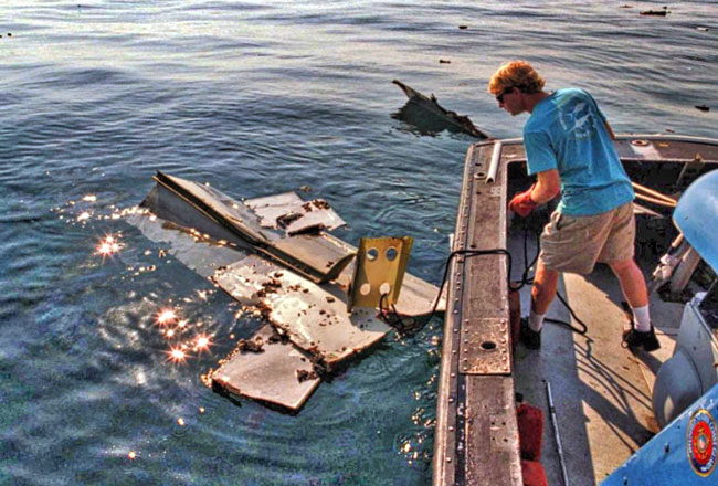 Remote-operated vehicles (ROVs), side-scan sonar, and laser line-scanning equipment were used to search for and investigate underwater debris fields. Victims and wreckage were recovered by scuba divers and ROVs; later scallop trawlers were used to recover wreckage embedded in the ocean floor.