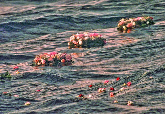 In a ceremony held a year after the tragedy, wreaths and flowers were given by family members of the victims to a Coast Guard rescue craft crew, which set the flowers afloat on the water